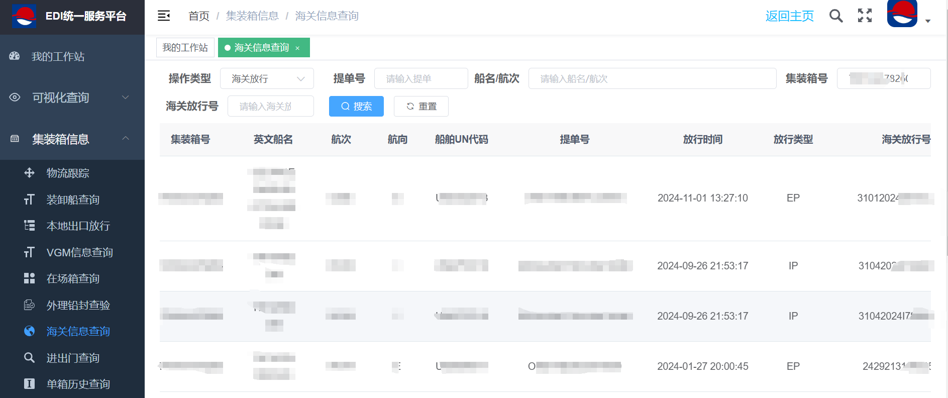 打开EDI网址,注册账号进入首页,找到查询端口,进入查询页面,输入相关信息,箱号、提单号进行搜索。