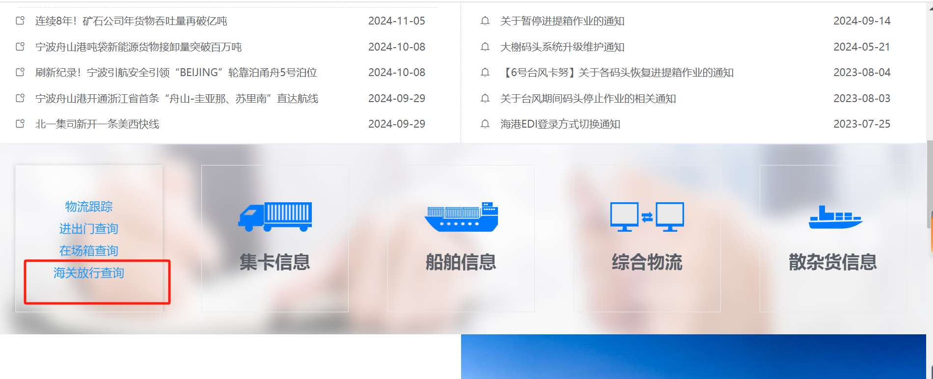 以宁波码头放关为例子,展示查询情况: